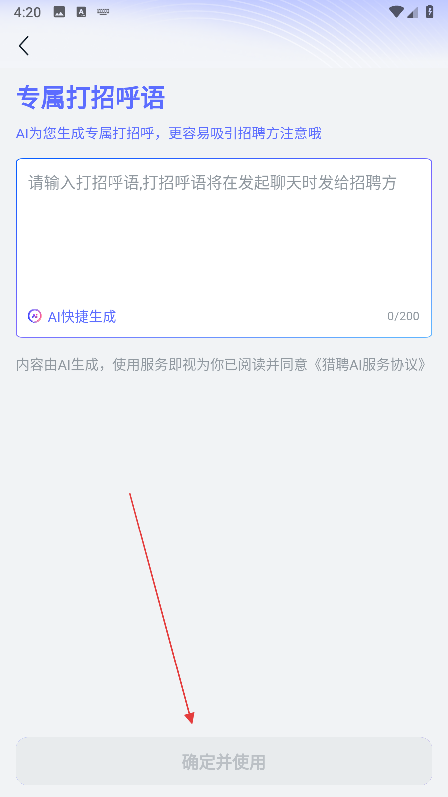 4、在專屬打招呼語頁面,輸入要設(shè)置的打招呼語,然后點擊確定并使用按鈕。
