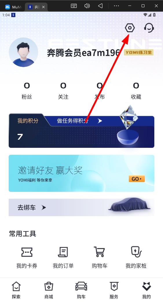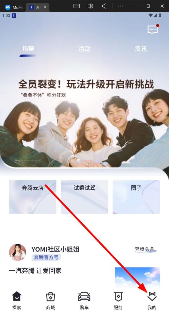 1、打開(kāi)奔騰YOMI應(yīng)用,點(diǎn)擊底部導(dǎo)航欄中的我的進(jìn)入個(gè)人頁(yè)面。