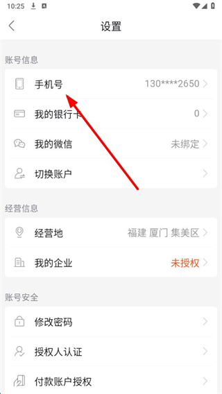 3、在設(shè)置頁(yè)面,點(diǎn)擊手機(jī)號(hào)選項(xiàng),進(jìn)入手機(jī)設(shè)置頁(yè)面。