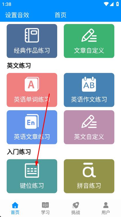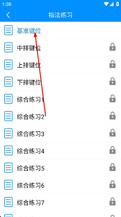 2、進(jìn)入指法練習(xí)頁面,選擇想要練習(xí)的項(xiàng)目。