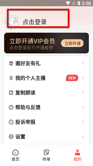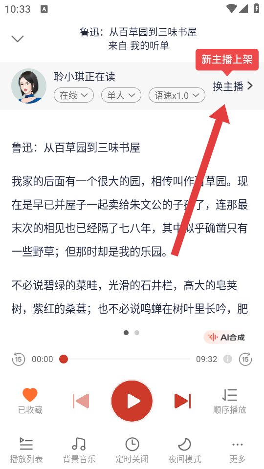 2、在個聽書頁面里,找到并點擊主播聲音選項,進(jìn)入聲音的選擇界面。