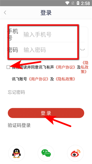 4、輸入手機(jī)號和密碼,勾選同意后,點擊登錄按鈕,即可完成密碼登錄操作。