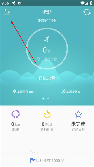1、在L8STAR APP運動頁面,點擊左上角設(shè)置圖標。
