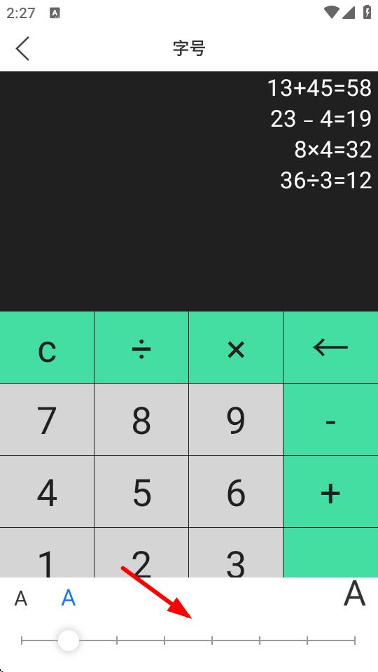 4、在字號(hào)調(diào)整界面,通過滑動(dòng)下方的滑塊,即可按照個(gè)人需求調(diào)整計(jì)算器字體大小。