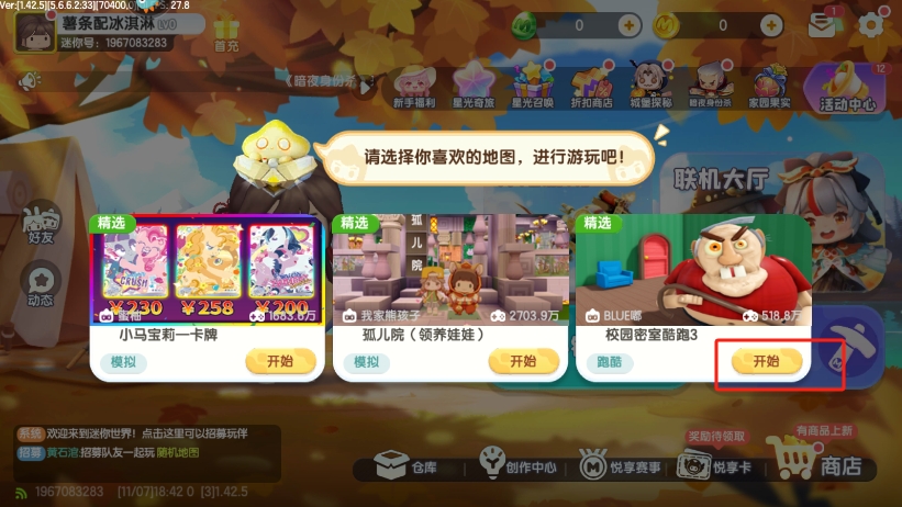 2、接著我們進(jìn)入游戲后可以選擇想要游玩體驗(yàn)的優(yōu)秀,選擇點(diǎn)擊開(kāi)始就能進(jìn)進(jìn)入游戲了;