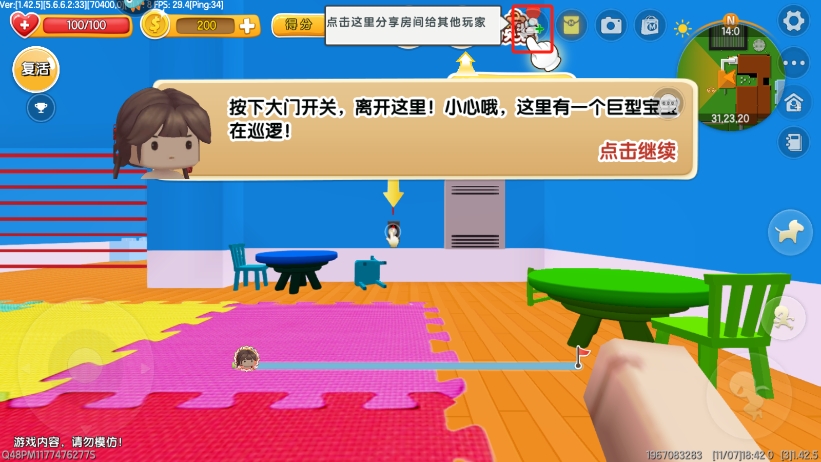 3、在游戲的最上方的小人處還有一個(gè)加號(hào)這里,點(diǎn)擊就可以分享房間邀請(qǐng)其他的玩家加入了;