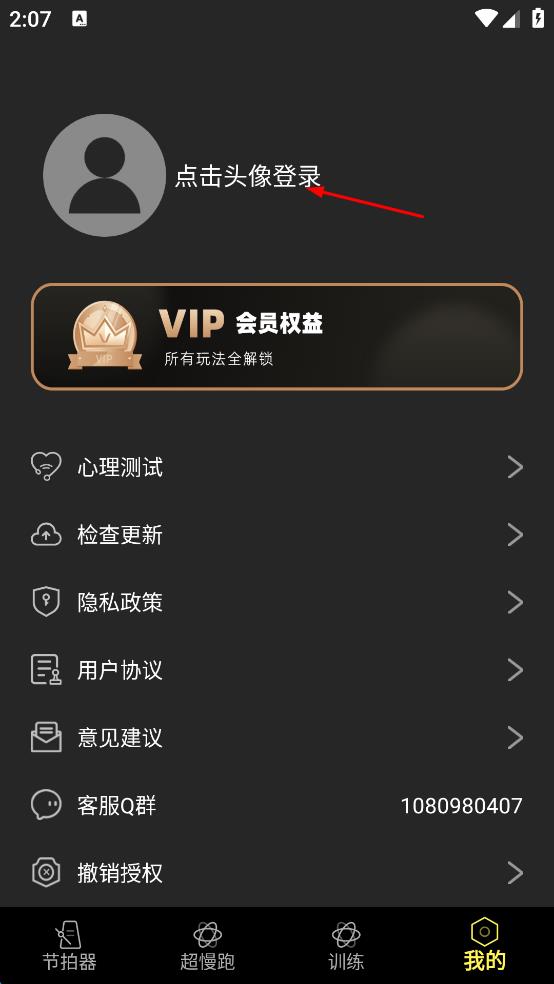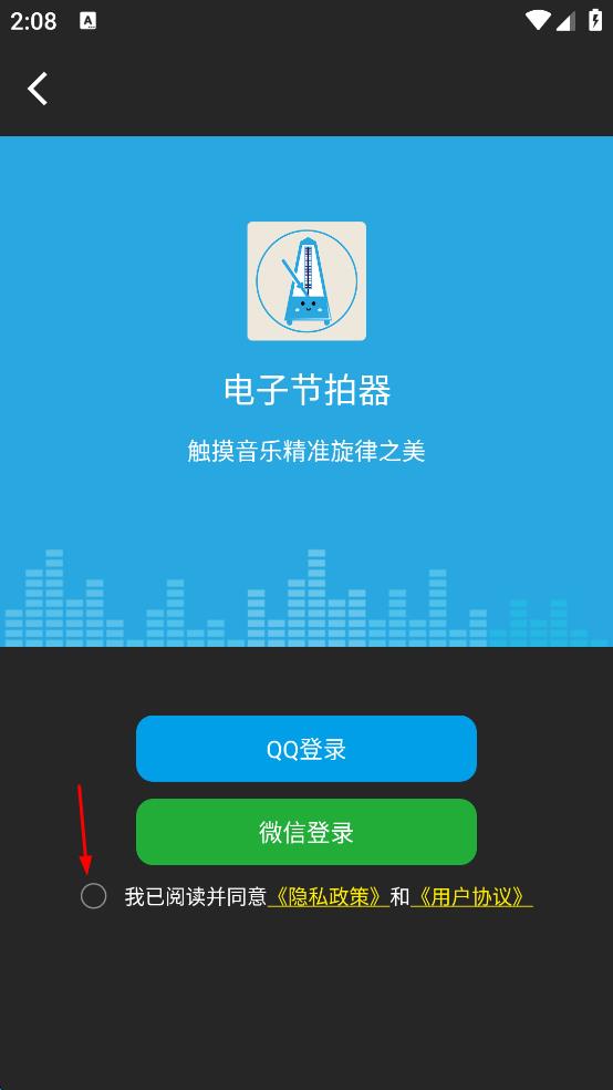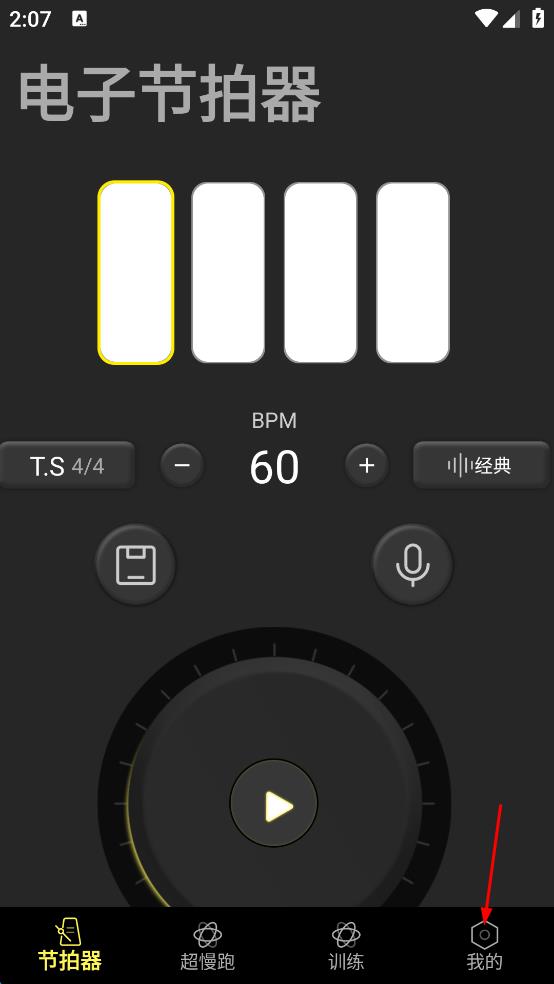 1、打開電子節(jié)拍器,點(diǎn)擊頁面右下角“我的”,進(jìn)入個(gè)人頁面。