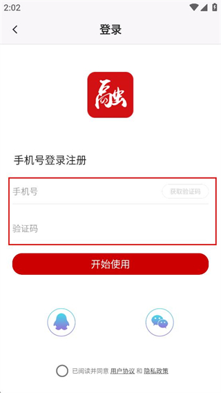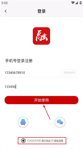 4、勾選已閱讀并同意用戶協(xié)議及隱私政策,點(diǎn)擊開始使用。