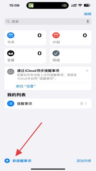 1、打開(kāi)提醒事項(xiàng)APP,在首頁(yè)內(nèi)點(diǎn)擊左下角新提醒事項(xiàng)的按鈕。