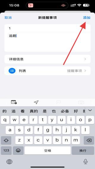 3、輸入后,點(diǎn)擊右上角添加的功能按鈕。