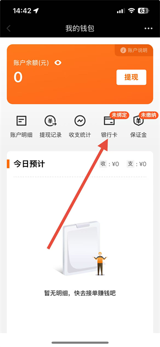 3、在我的錢(qián)包頁(yè)面點(diǎn)擊銀行卡選項(xiàng),進(jìn)入提現(xiàn)銀行卡頁(yè)面。