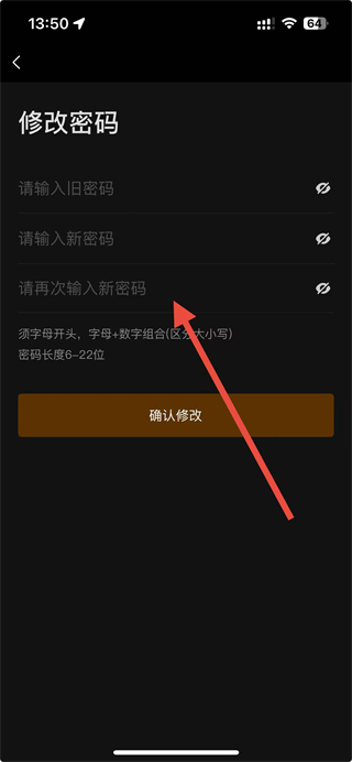 4、在修改密碼頁(yè)面,輸入舊密碼,再輸入新密碼,點(diǎn)擊確認(rèn)修改按鈕完成操作。
