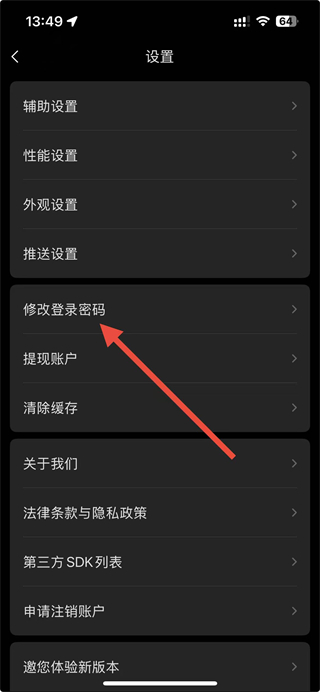 3、在設(shè)置界面,找到修改登錄密碼選項(xiàng),點(diǎn)擊進(jìn)入修改密碼頁(yè)面。