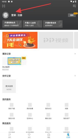 2、在個(gè)人中心頁(yè)面頂部,用戶需點(diǎn)擊登錄的按鈕。