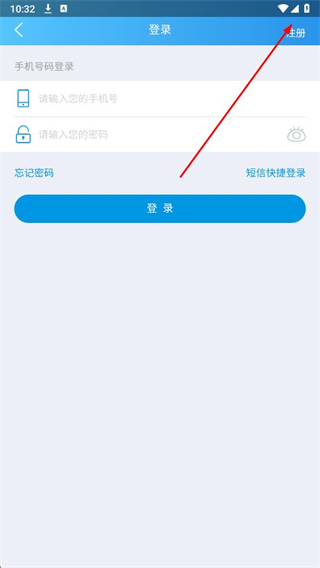 3、在登錄界面,點擊右上角的注冊選項,切換到注冊頁面。