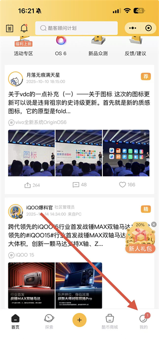 1、打開OPPO社區(qū)應(yīng)用,點(diǎn)擊底部導(dǎo)航欄最右側(cè)的我的,進(jìn)入個(gè)人頁(yè)面。