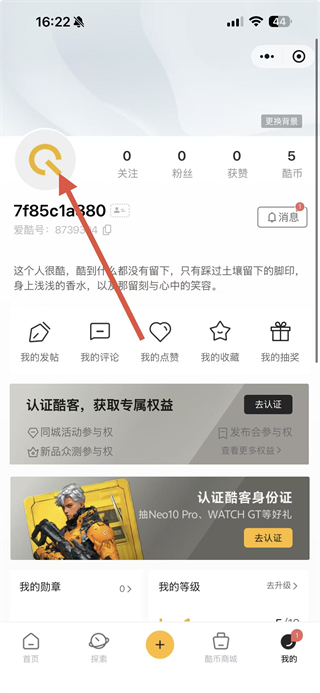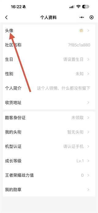 2、在個(gè)人頁(yè)面中,點(diǎn)擊頭像圖標(biāo)位置,進(jìn)入個(gè)人資料設(shè)置頁(yè)面。