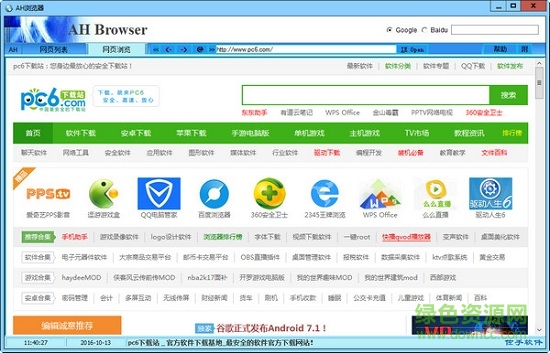 AH網(wǎng)頁瀏覽器4.39官方版是一款具有強大搜索引擎的網(wǎng)頁瀏覽器,能夠帶給用戶更加全面的網(wǎng)頁瀏覽,全面的信息提供為你展現(xiàn)各類精彩的視頻,熱門的新聞以及各類特色信息文章等等,讓你感受到更多有趣的信息,需要的用戶快來綠色資源網(wǎng)下載吧!