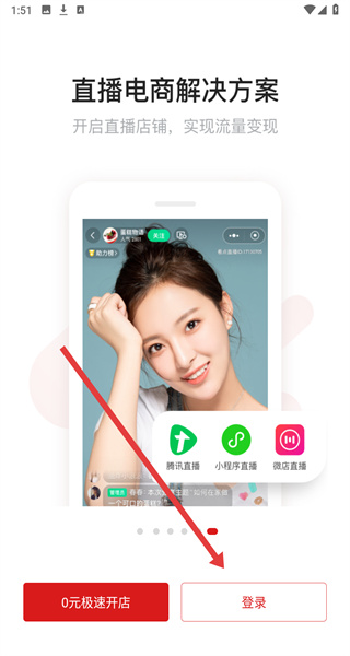 2、在直播電商解決方案界面,點(diǎn)擊登錄按鈕,跳轉(zhuǎn)至登錄操作頁(yè)面。