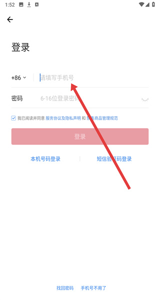 3、在登錄頁(yè)面的請(qǐng)?zhí)顚?xiě)手機(jī)號(hào)輸入欄中,輸入個(gè)人手機(jī)號(hào)碼,準(zhǔn)備后續(xù)登錄步驟。