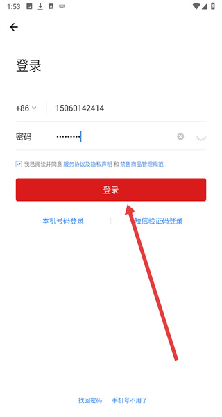 4、在密碼輸入欄填寫(xiě)登錄密碼,勾選相關(guān)協(xié)議后,點(diǎn)擊登錄按鈕,完成微店APP的登錄流程。