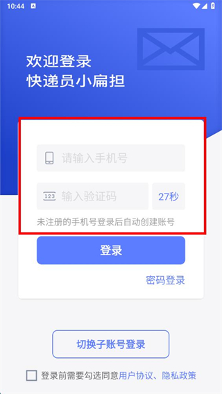 1、在登錄頁(yè)面輸入手機(jī)號(hào),獲取驗(yàn)證碼,未注冊(cè)手機(jī)號(hào)將自動(dòng)創(chuàng)建賬號(hào)。