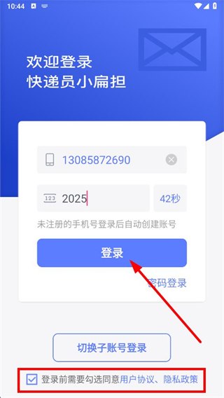 2、勾選同意用戶協(xié)議和隱私政策后,點(diǎn)擊登錄選項(xiàng)。