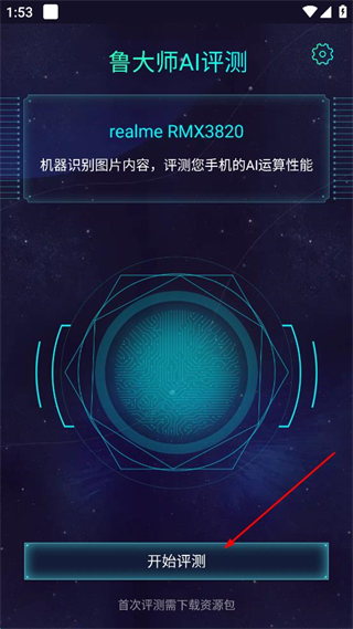 2、在評測準(zhǔn)備界面,點擊“開始評測”按鈕,啟動手機(jī)AI運算性能評測。