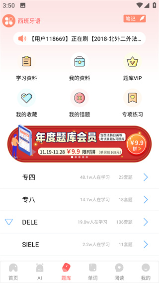 每個(gè)語種的每個(gè)等級,收藏歷年真題可以復(fù)習(xí),方便了解考試題型、難度,鍛煉自己的做題速度,也可以通過題庫鞏固和復(fù)習(xí)有關(guān)知識(shí)。遇到不會(huì)的題目可以在筆記圈里跟同學(xué)們一起討論。