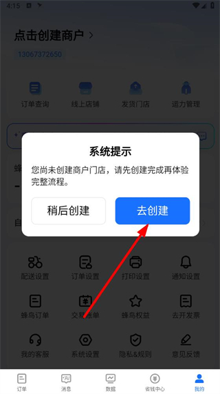 3、在彈出的系統(tǒng)提示框中,點擊去創(chuàng)建的選項按鈕。