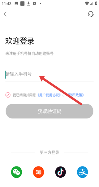 3、在登錄頁(yè)面輸入手機(jī)號(hào)碼,點(diǎn)擊“獲取驗(yàn)證碼”。