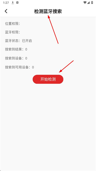 3、掃描無結(jié)果,進(jìn)入檢測藍(lán)牙搜索頁面,點(diǎn)擊開始檢測,完成藍(lán)牙連接操作。