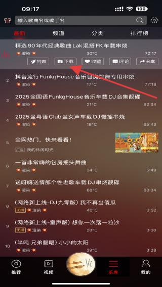 2、在樂庫的界面內,選擇你要下載的音樂。