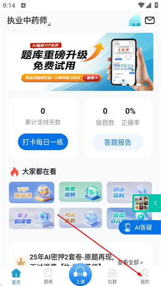 2、進入APP首頁后,點擊底部導(dǎo)航欄中的我的選項。