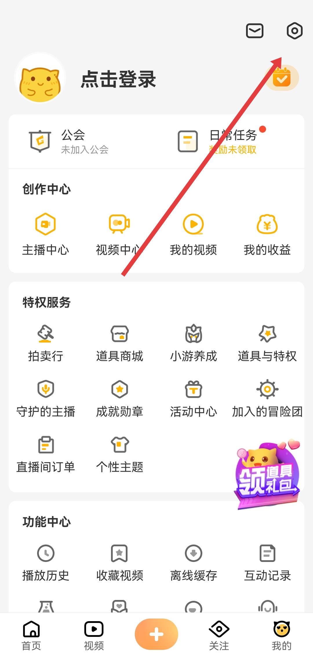 1、進入我的頁面后,點擊右上角齒輪形狀的設置圖標,進入設置界面。