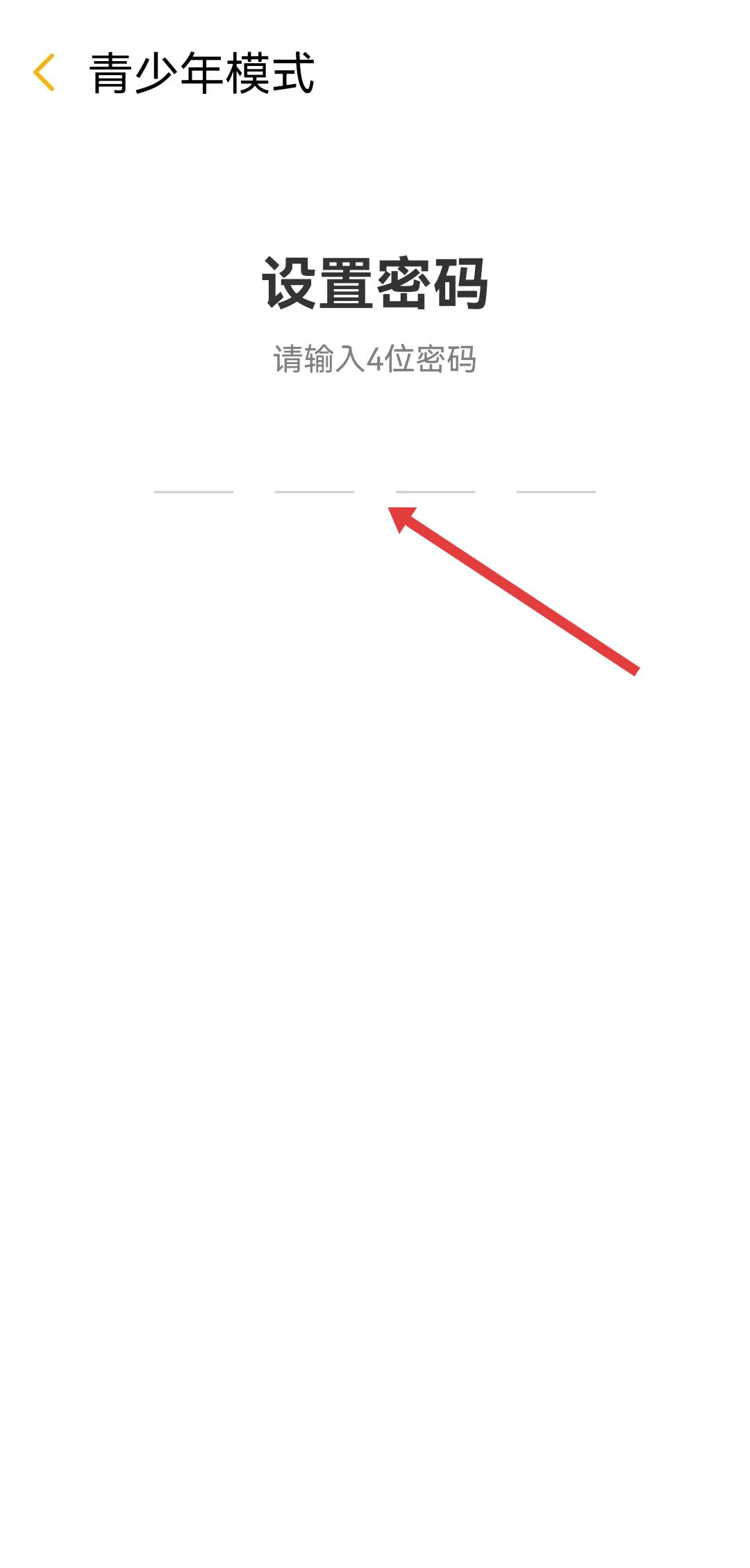 4、在設置密碼頁面,輸入4位密碼,完成青少年模式的開啟操作。