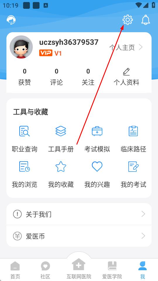 2、在個(gè)人頁(yè)面中,點(diǎn)擊右上角的齒輪狀設(shè)置圖標(biāo),進(jìn)入設(shè)置界面。