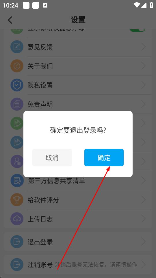 4、在彈出的確定要退出登錄嗎?提示框中,點(diǎn)擊確定按鈕,即可完成退出登錄操作。