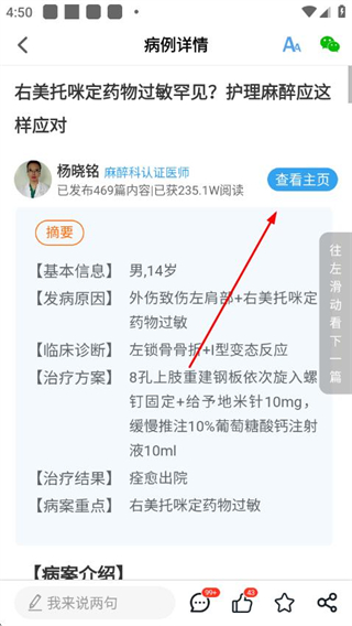 1、打開診療助手首頁(yè),點(diǎn)擊目標(biāo)病例內(nèi)容,進(jìn)入病例詳情頁(yè)面。