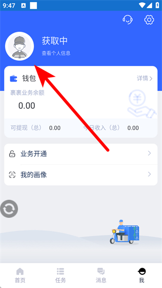 2、進(jìn)入個(gè)人頁(yè)面后,點(diǎn)擊頭像區(qū)域,進(jìn)入個(gè)人信息的界面。
