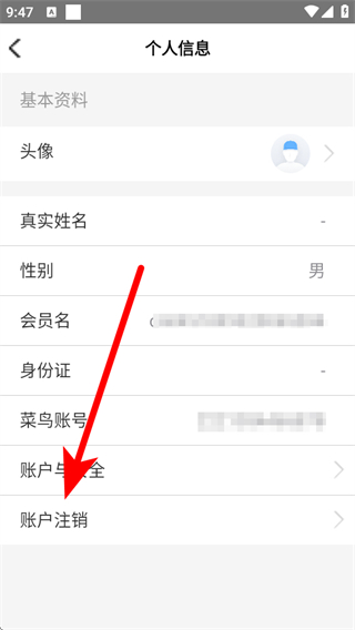 3、在個(gè)人信息界面中,點(diǎn)擊賬戶注銷,進(jìn)入賬號(hào)注銷說(shuō)明的頁(yè)面。