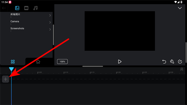 2、在編輯頁(yè)面,點(diǎn)擊時(shí)間軸上的加號(hào)按鈕,準(zhǔn)備添加媒體內(nèi)容。
