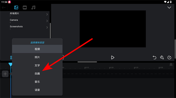 3、在彈出的選擇媒體類型菜單中,點(diǎn)擊自畫選項(xiàng),進(jìn)入繪畫界面。