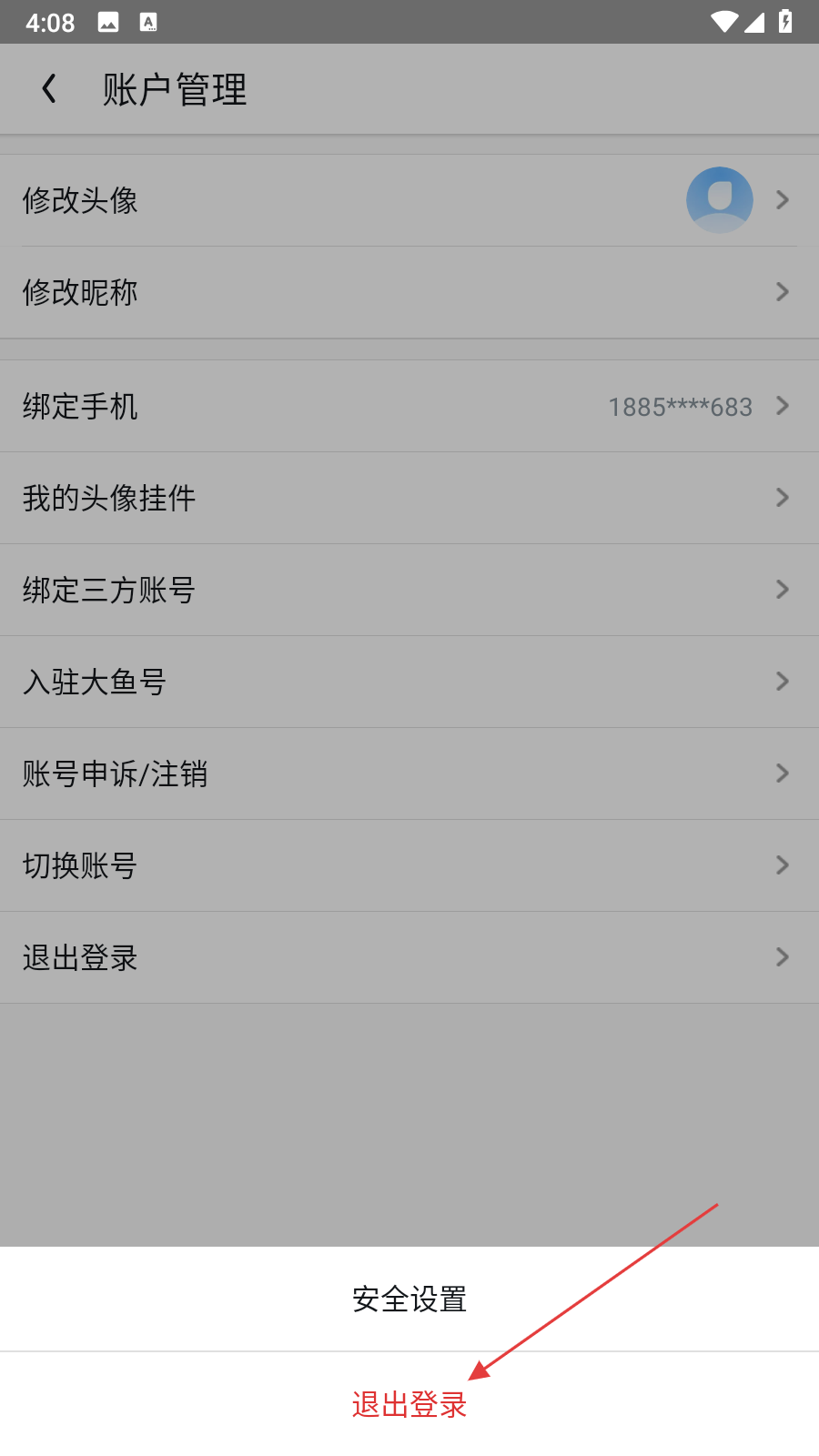 2、彈出菜單欄之后,點(diǎn)擊頭像,進(jìn)入賬戶管理界面。