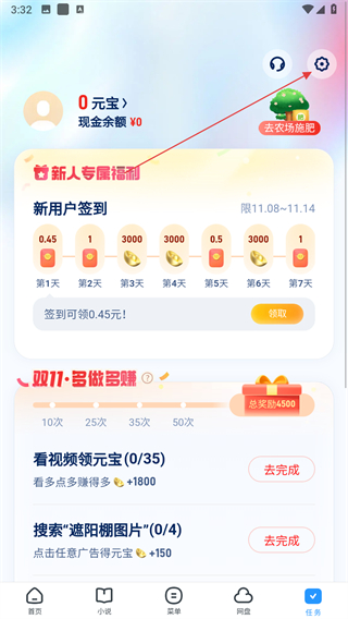 1、打開UC瀏覽器APP,點(diǎn)擊設(shè)置圖標(biāo)。