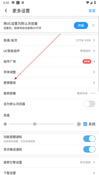 2、在設(shè)置頁(yè)面,點(diǎn)擊更換壁紙選項(xiàng)。