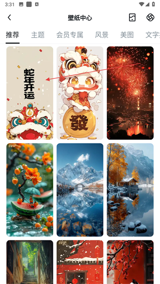 3、在壁紙中心頁(yè)面,選擇喜歡的壁紙。
