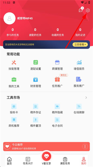 2、進(jìn)入個(gè)人界面后,點(diǎn)擊右上角的設(shè)置圖標(biāo),進(jìn)入設(shè)置頁(yè)面。