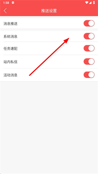 4、在推送設(shè)置頁(yè)面,找到消息推送對(duì)應(yīng)的開(kāi)關(guān)按鈕,點(diǎn)擊將其關(guān)閉,即可停止接收消息推送。
