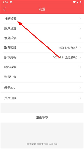 3、在設(shè)置頁(yè)面中,點(diǎn)擊推送設(shè)置選項(xiàng),進(jìn)入推送管理的操作界面。
